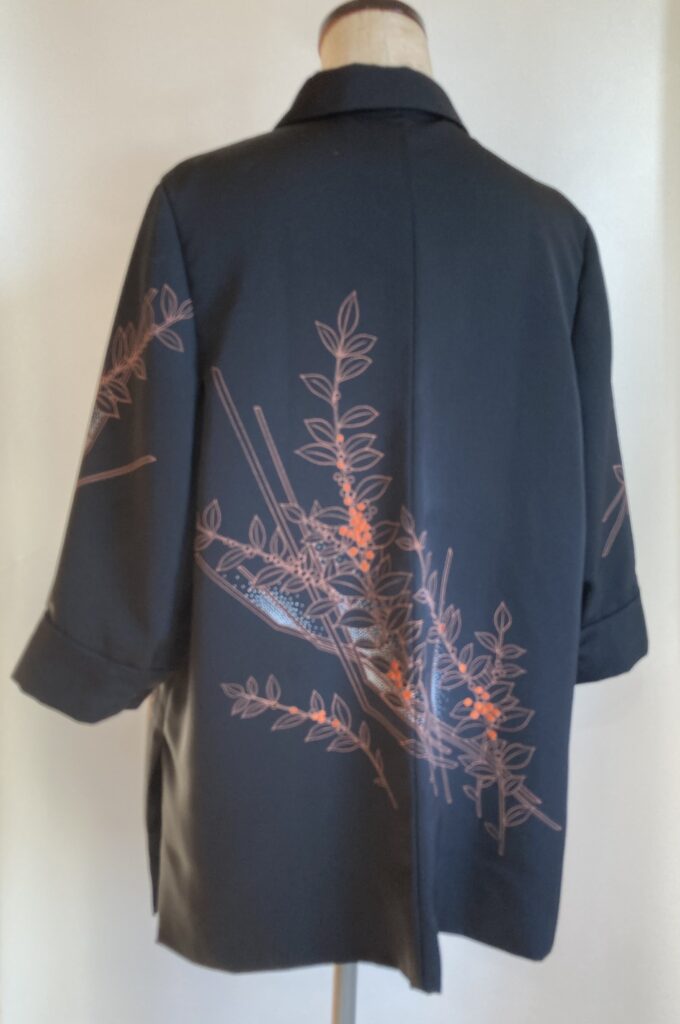 着物リメイクシャツ 正絹 黒 柄物